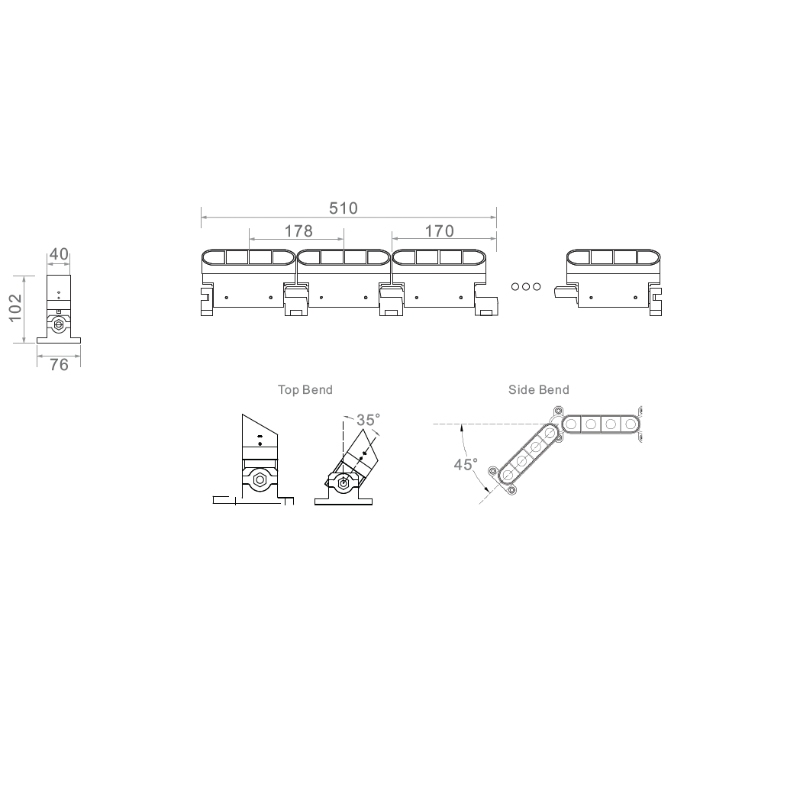 Unrivaled 3D Flexibility: Unlike standard flexible strips, the Vertebrae System features mechanical joints allowing for 35° Vertical Rotationand 90° Horizontal Rotation. It can navigate complex curves, spiral around columns, or follow the irregular contours of natural stone.